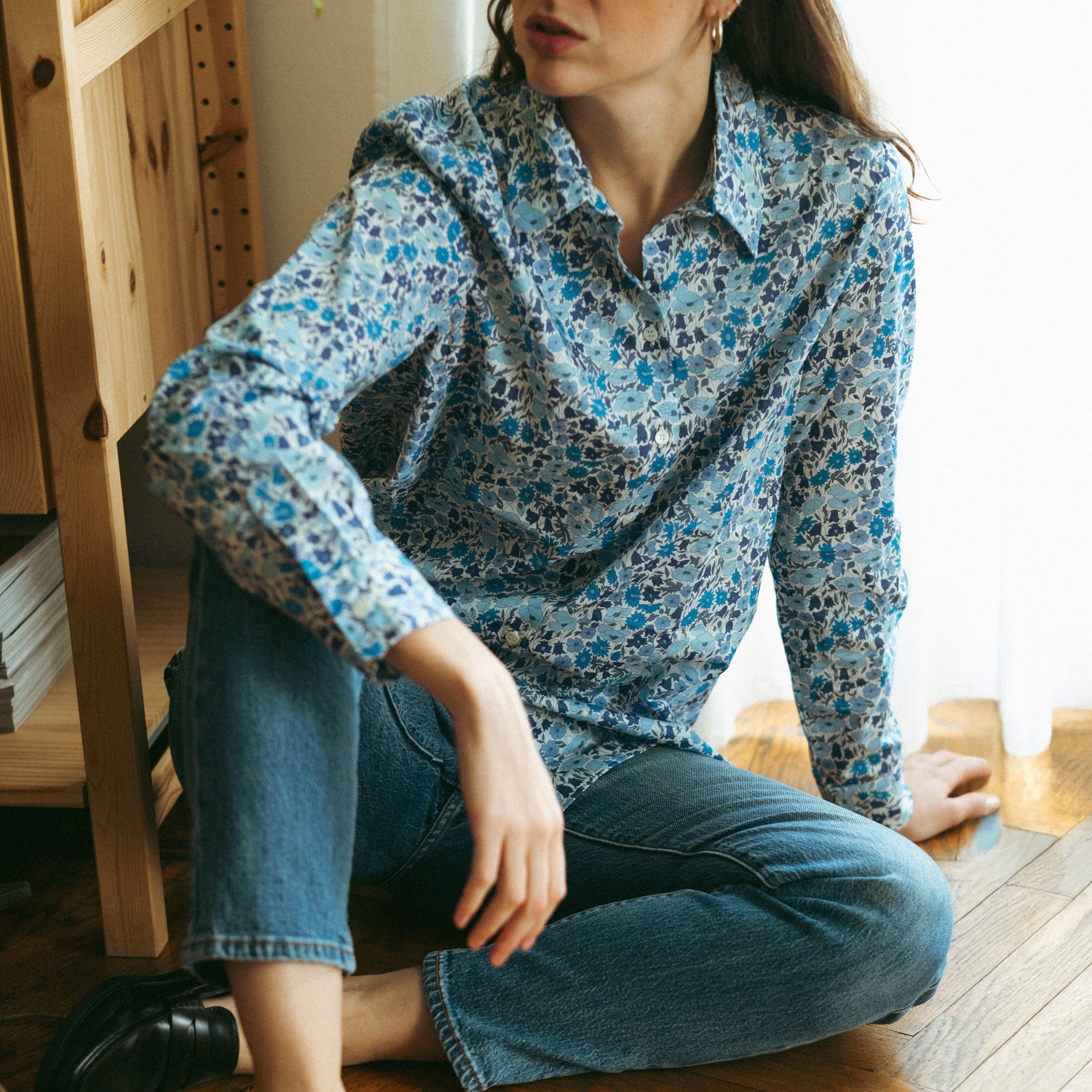 Camicia LIberty Poppy and Daisy Azzurro