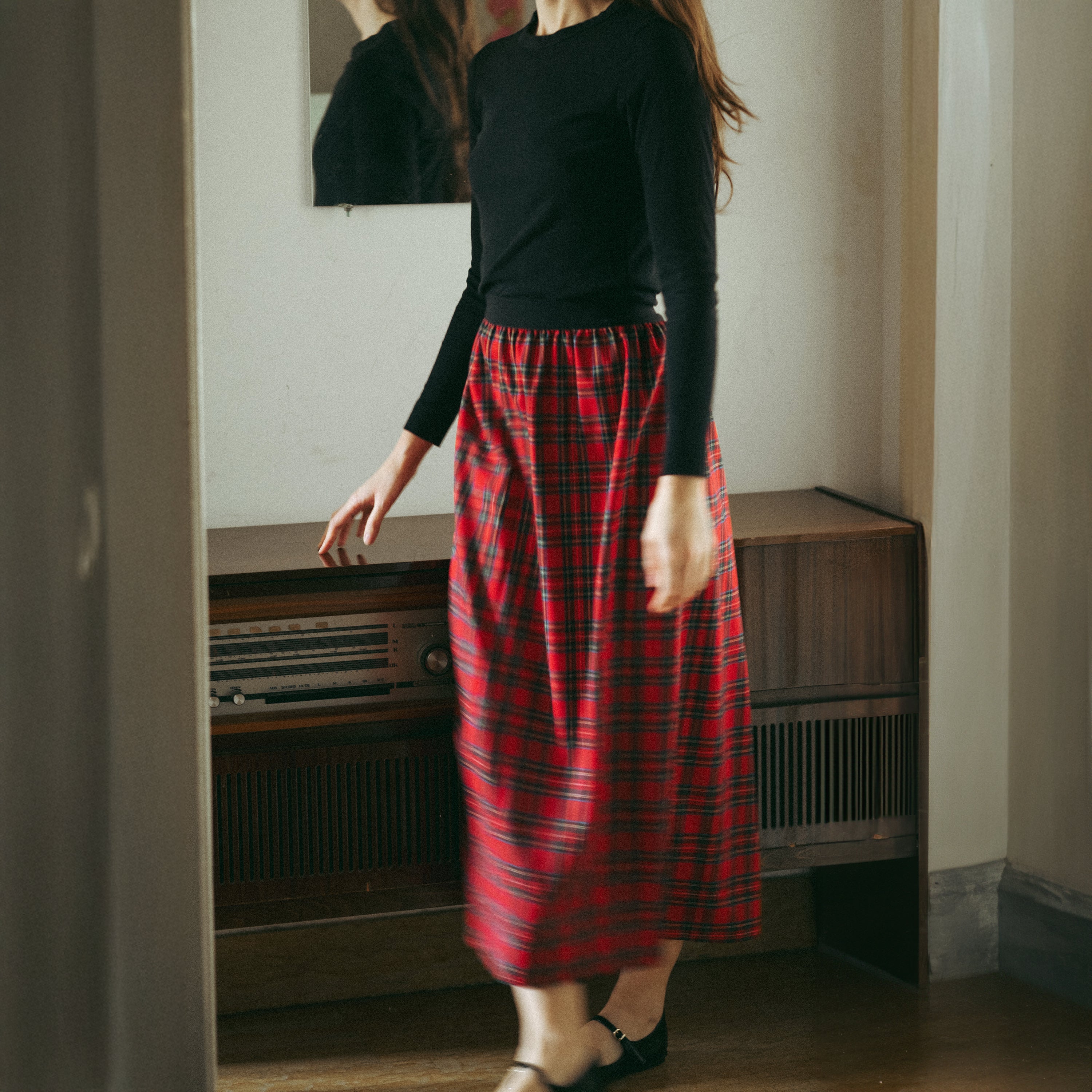 Gonna in tessuto tartan rosso dal fascino senza tempo.